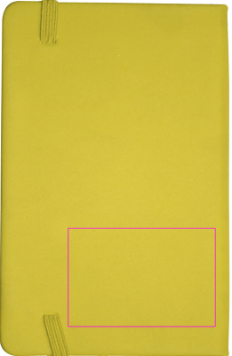 Тетрадь формата DIN A6 в бархатисто-полиуретановой обложке на 170 нейтральных страниц. На обложке напечатаем ваш логотип.
