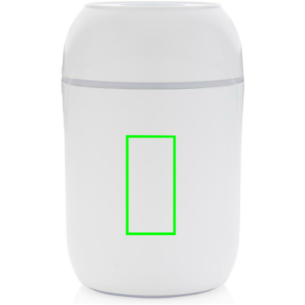 Увлажнитель воздуха из прочного АБС-пластика со встроенной внутренней УФ-лампой, которая будет хорошо смотреться на любой столешнице. Увлажнитель воздуха будет создавать туман, чтобы поддерживать в любом жилом помещении здоровую атмосферу с оптимальным качеством воздуха. Зимой он будет следить за тем, чтобы воздух был менее сухим, а летом будет иметь функцию охлаждения. Насадка издает очень мало шума, поэтому ее можно использовать даже ночью. Встроенная УФ-лампочка убьет до 99,9% потенциально вредных бактерий в воде перед распылением. В комплект входят 2 дополнительные ватные палочки для замены оригинальной. Одной ватной палочки хватит на 8 месяцев постоянного использования. Содержимое: 200 мл, которые необходимо заполнять после 4 часов использования. Длина волны УФ-лампочки 270–280 нм. УФ-лампочка будет активироваться только при закрытом устройстве. В комплект входит 120-сантиметровый кабель для зарядки из микро-TPE без ПВХ