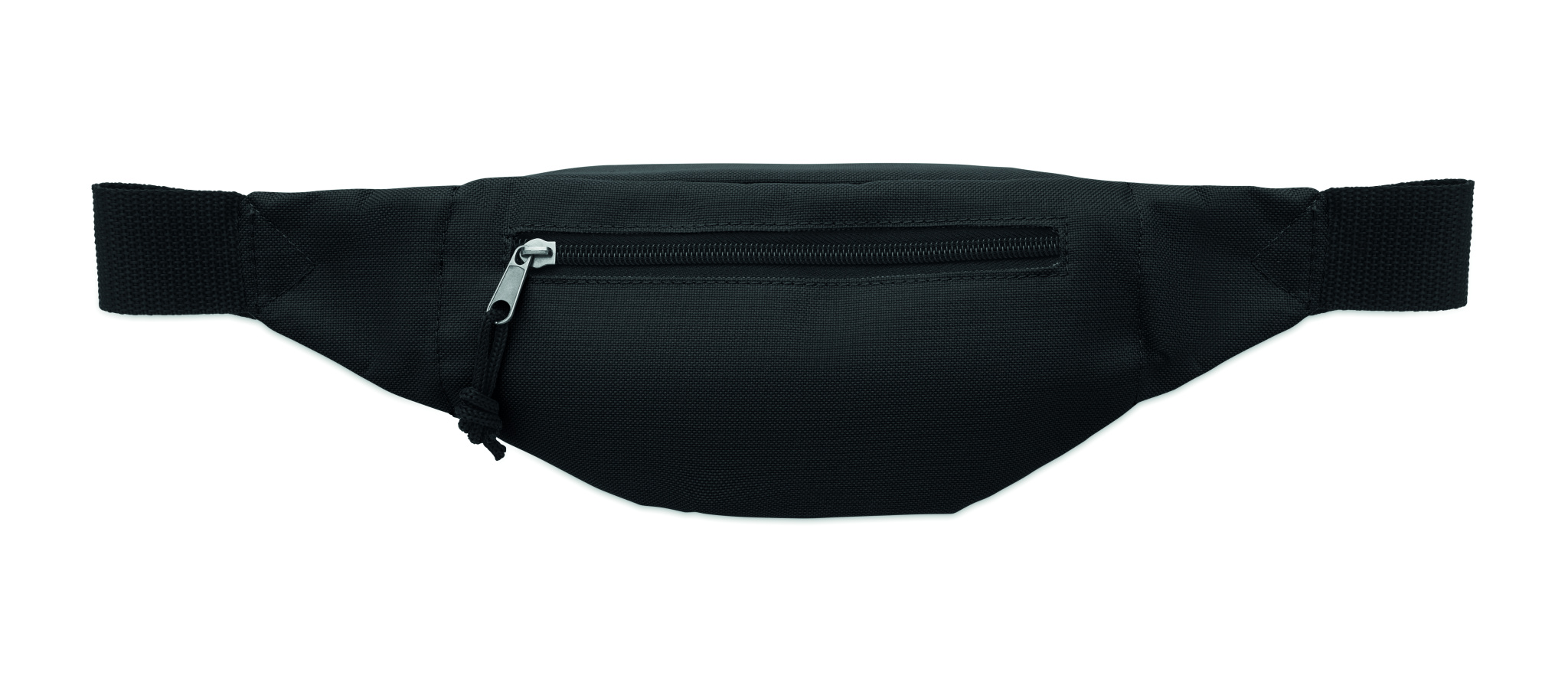 Waist bag in 600D RPET polyester with zippered main compartment and hidden zippered back compartment.
