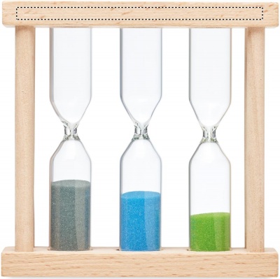 Logotrade profilprodukter bild: 3 st timglas i trä