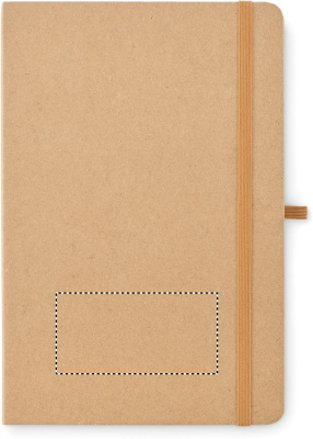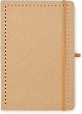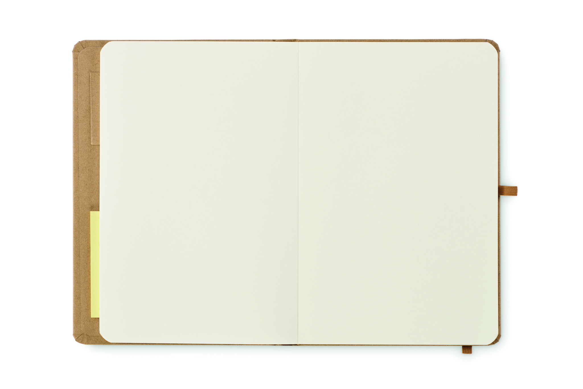 A5 anteckningsblock med kartongomslag med 80 ark återvunnet papper (160 sidor), 25 ark sticky notes och 25 memolappar. Elastisk förslutningsrem och pennögla.