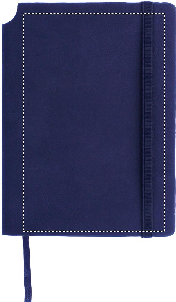 Anteckningsblock A5 i PU, 80 st linjerade papper och ficka på baksidan. Bokmärkesband i satin och elastisk gummisnodds förslutning. Praktisk pennhållare på ryggen.
