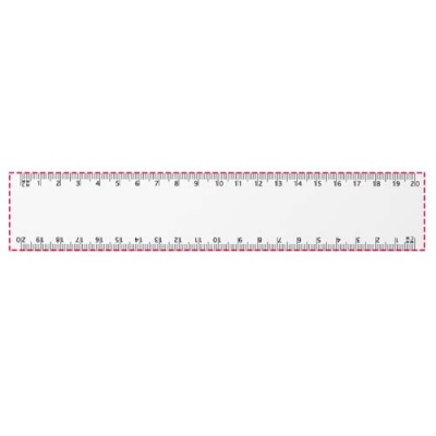 Flexibel och lätt plastlinjal tillverkad i syntetiskt papper på 450 g/m2 med markeringar både i tum och centimeter. Syntetiskt papper 450 g/m². Observera att linjalmarkeringarna skrivs ut tillsammans med tryck, linjaler som beställs utan tryck kommer inte att ha markeringar.