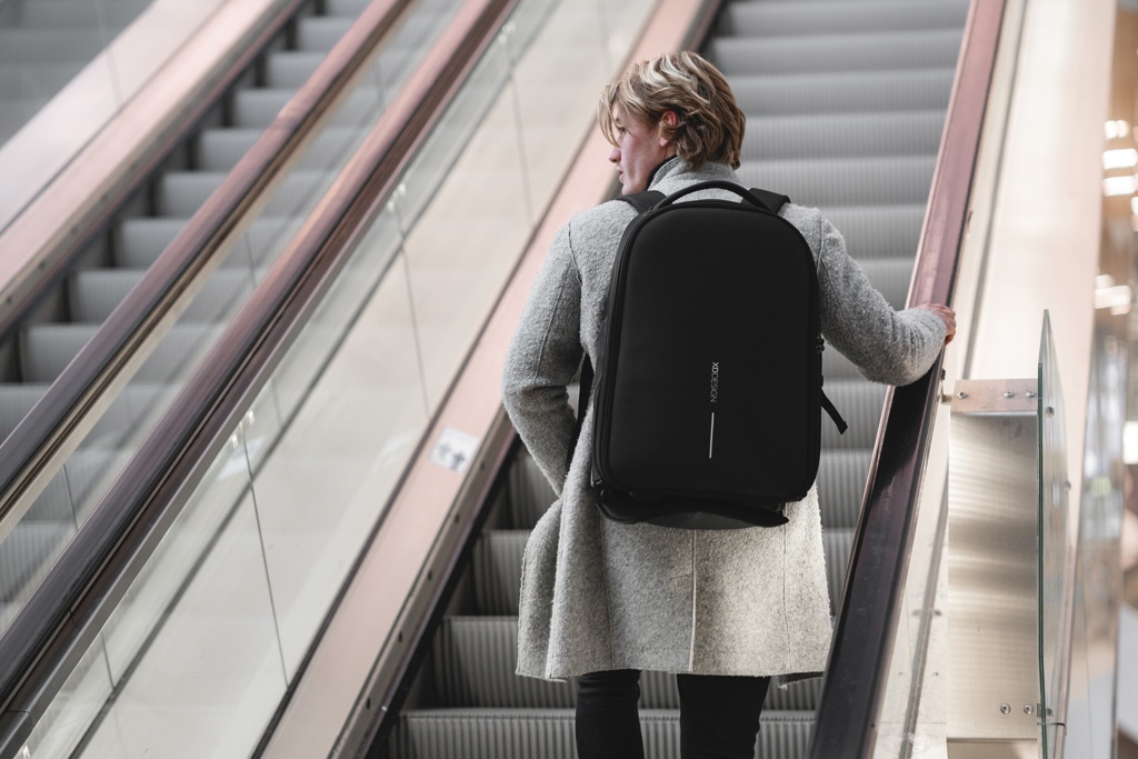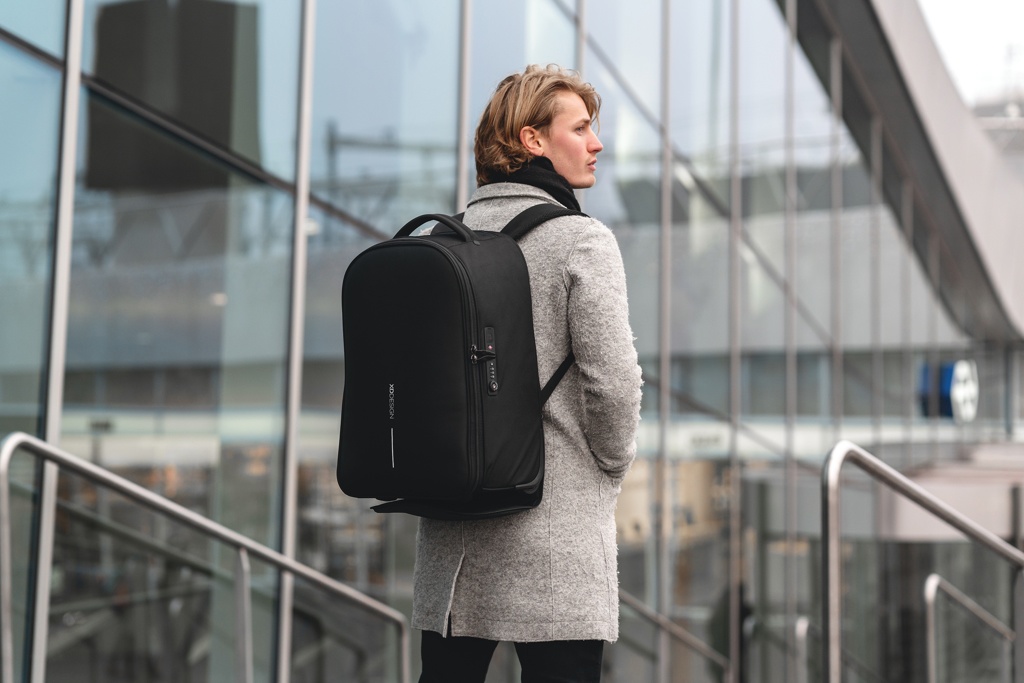 Bekväm som trolley och praktisk som ryggsäck. Bobby ryggsäckstrolleyn passar lika bra för korta resor som för dagligt pendlande. Förvandla enkelt från en ryggsäck till en trolley genom att förvara axelremmarna i den bakre panelen och släppa handtaget. När du byter till ryggsäck kan du dölja handtaget och täcka över hjulen så att du inte blir smutsig. Bobby ryggsäckstrolley är en säker väska som erbjuder flera av de välkända Bobby antificktjuv-funktionerna kombinerat med ett TSA® lås. På insidan finns flera fack för kläder och andra tillhörigheter, laptopfack med 30 grader öppningsvinkel med plats för 17" laptop. Fack för vattenflaska och RFID-skyddat fack.Tillverkad av R-pet material och AWARE™ spårämne och blockchain-teknologi. Registrerad design®