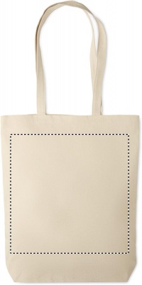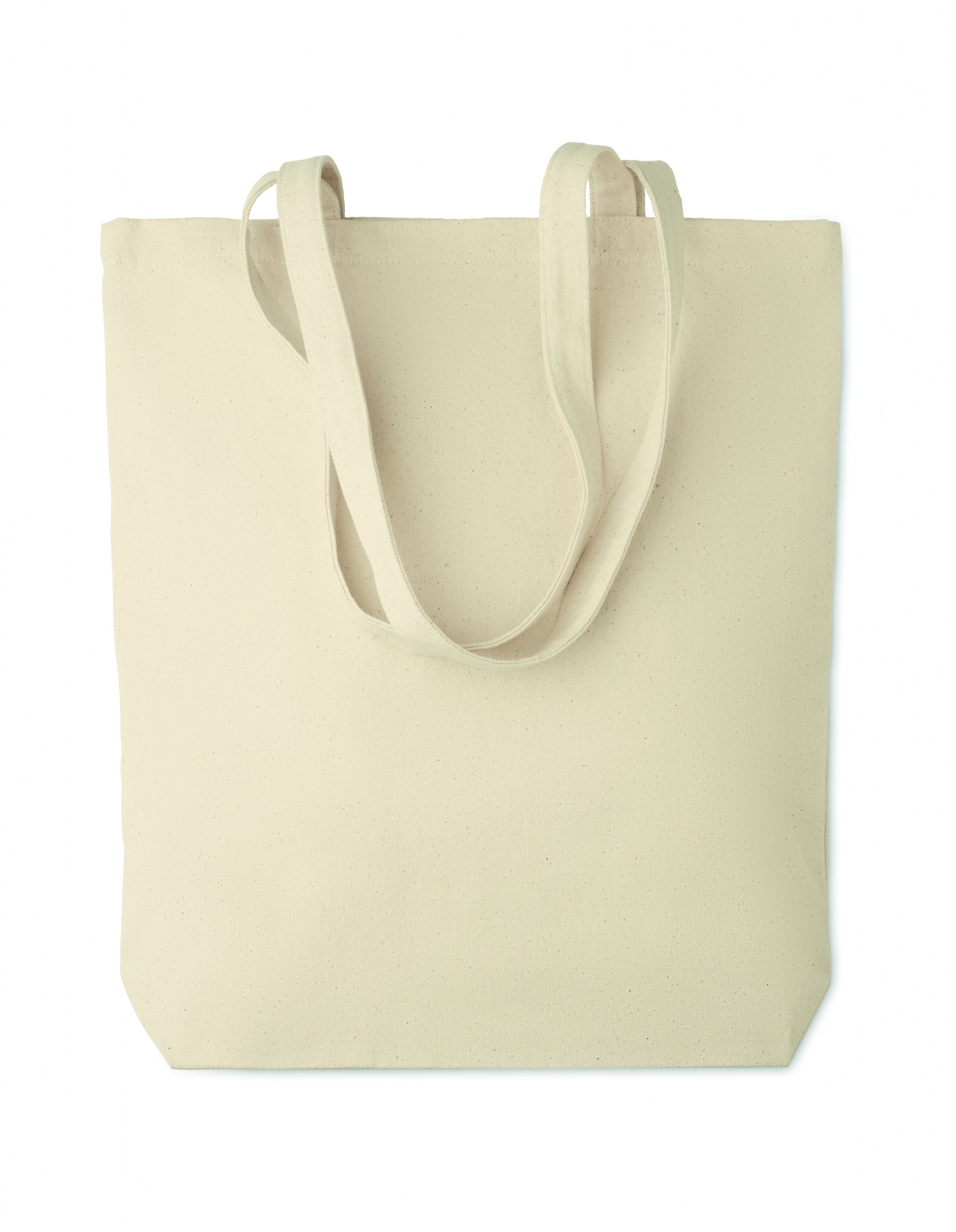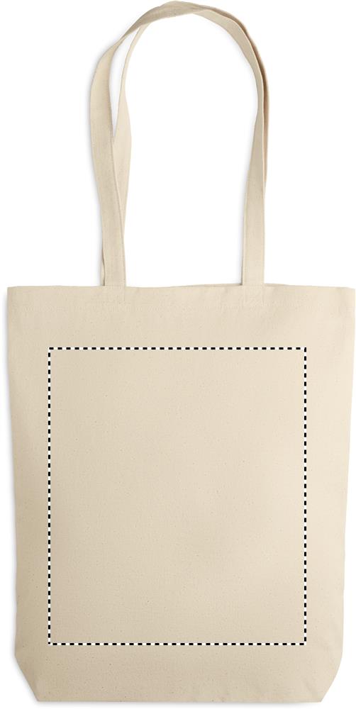 Tygkasse i kraftig bomullscanvas med långa handtag och bälg i botten. Kvalité: 270 gr/m².