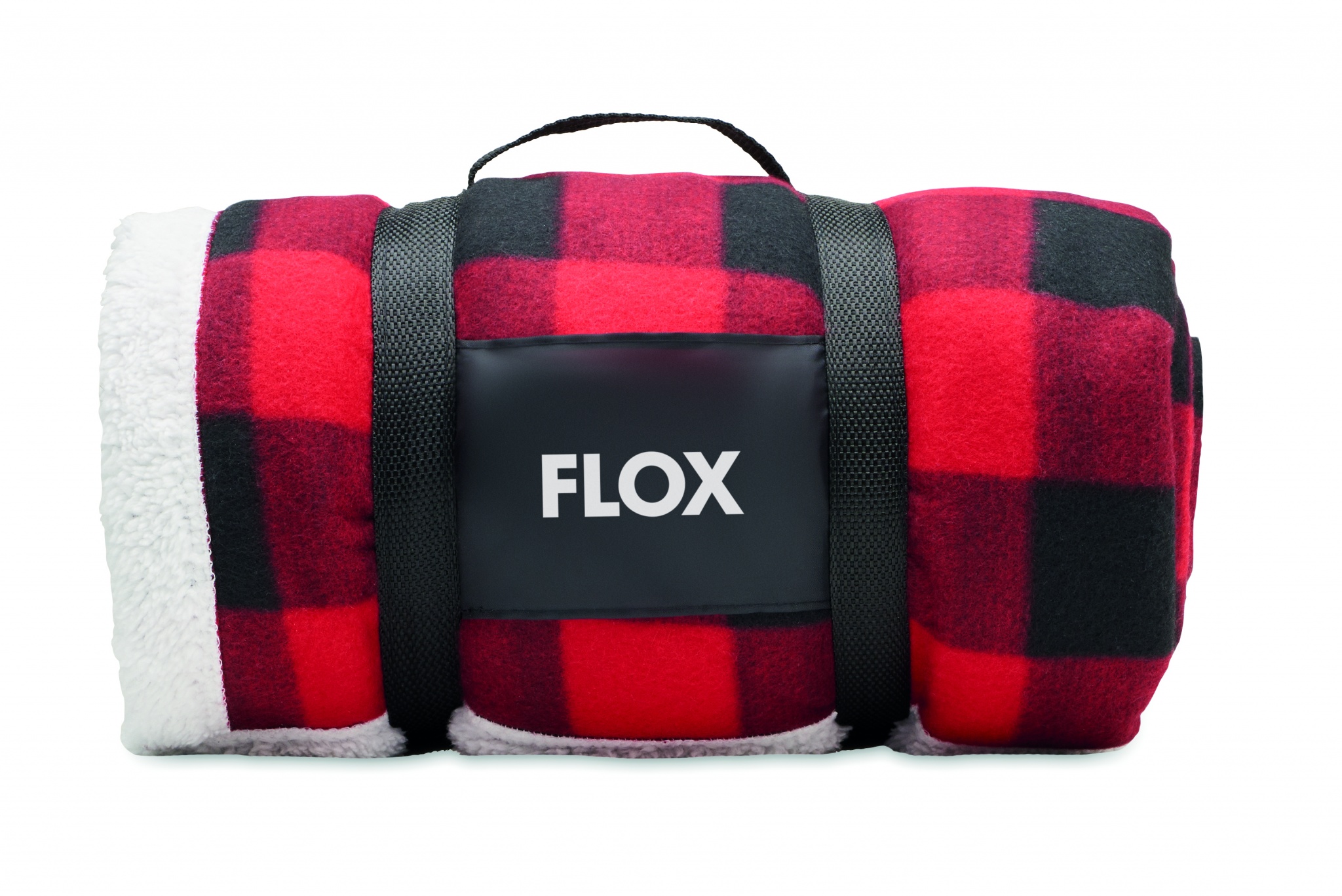 Sherpafodrad fleecefilt i RPET polarfleece (180 gr/m²) och polyester sherpa (230 gr/m²). Försedd med ett bärhandtag i RPET-nylon.