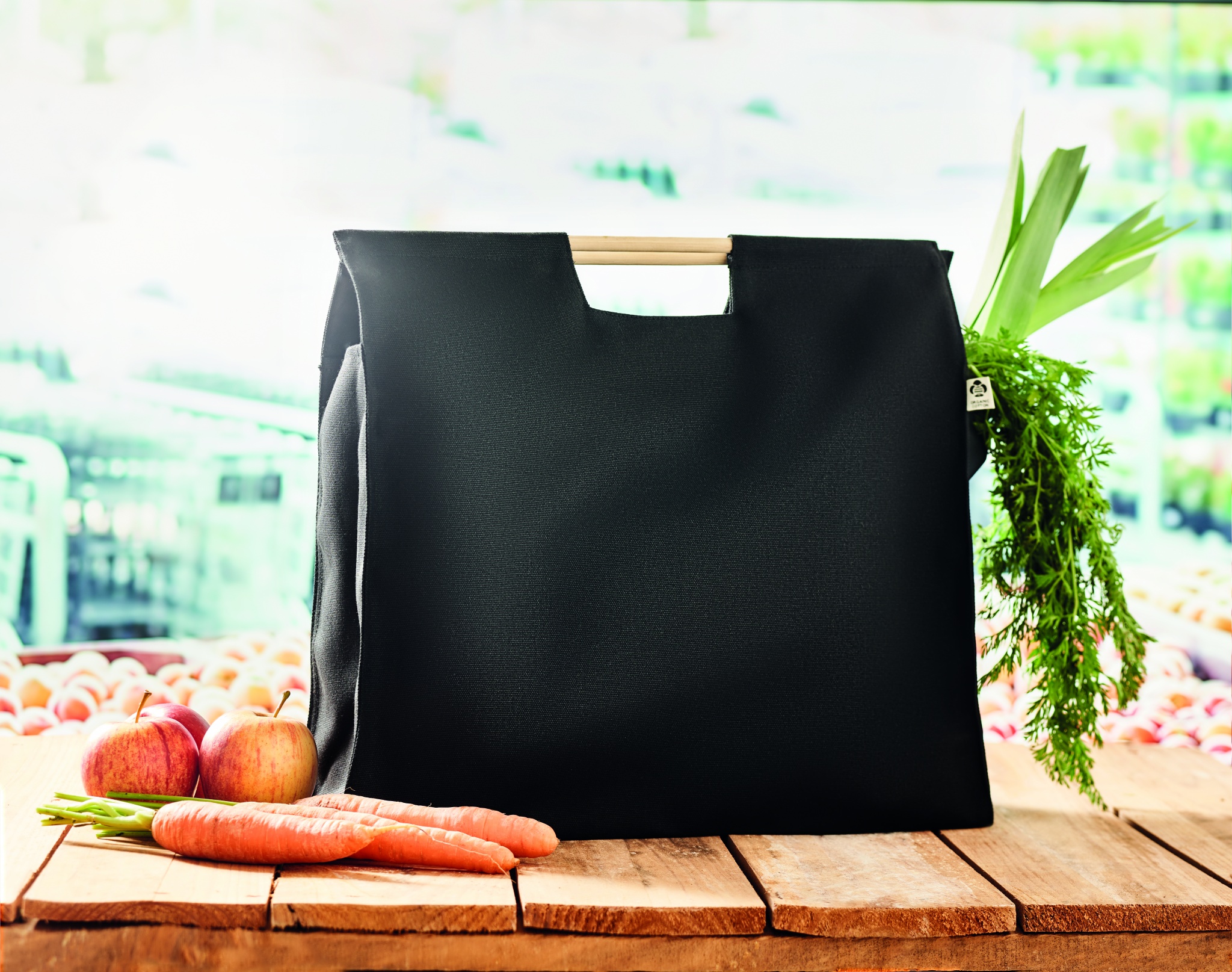 Shoppingväska i ekologisk canvas med handtag i bambu. 360 gr/m².