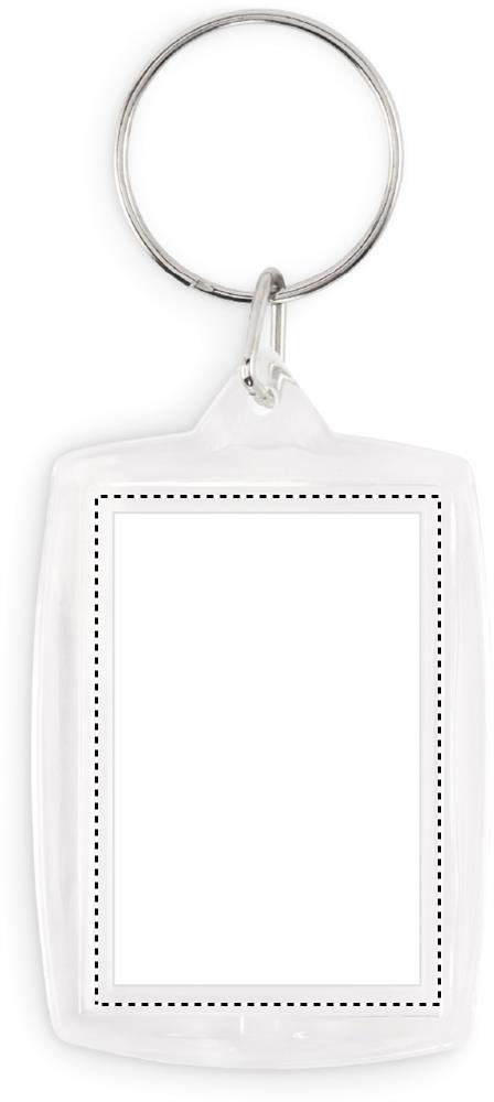 Klassisk nyckelring i akryl för pappersinlägg i fullfärg. Storlek på inre foto: 4,1 x 2,7 cm