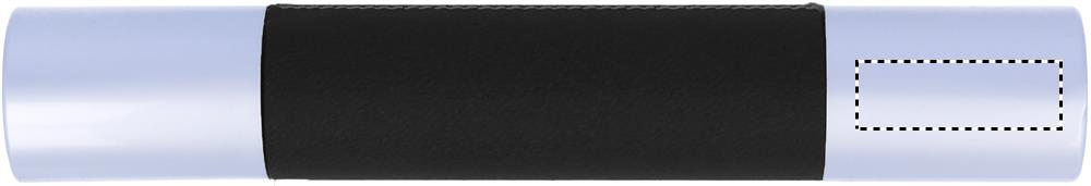 Kulspetspenna i metall och läderimitation i aluminium tub. Svart bläck.