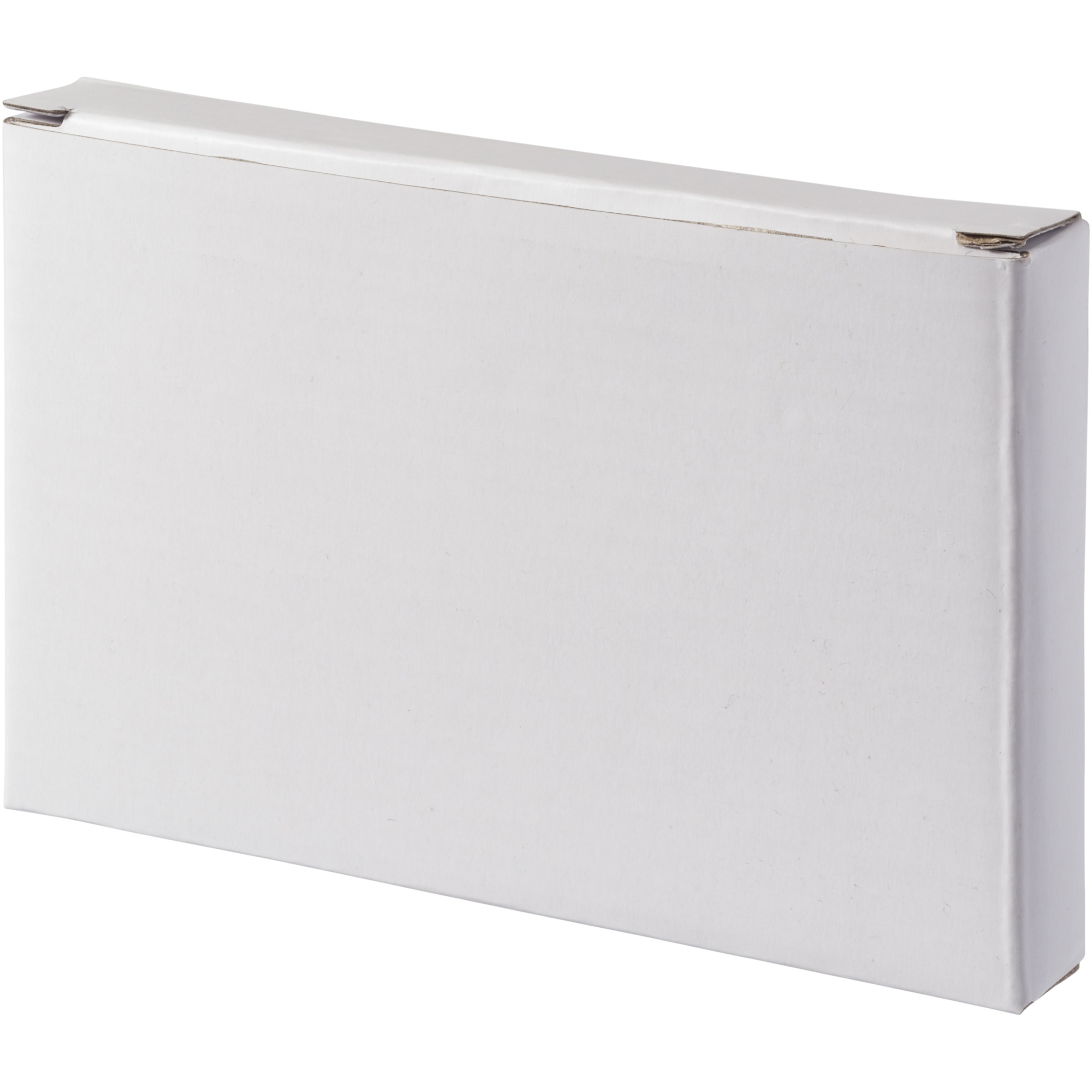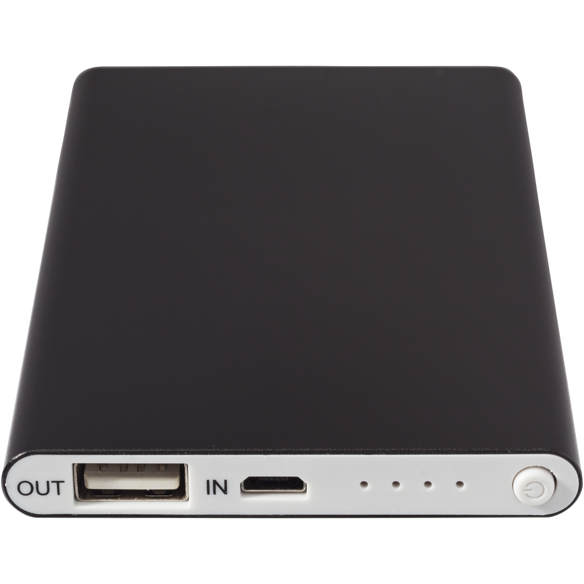 4000 mAh lättvikts-powerbank med grad A litiumpolymerbatteri. LED-indikatorerna lyser under laddning och visar återstående batterikapacitet. Ineffekt är 5 V/1 A och uteffekt 5 V/1 A. Inklusive USB till mikro-USB-laddningskabel. Vit presentförpackning.