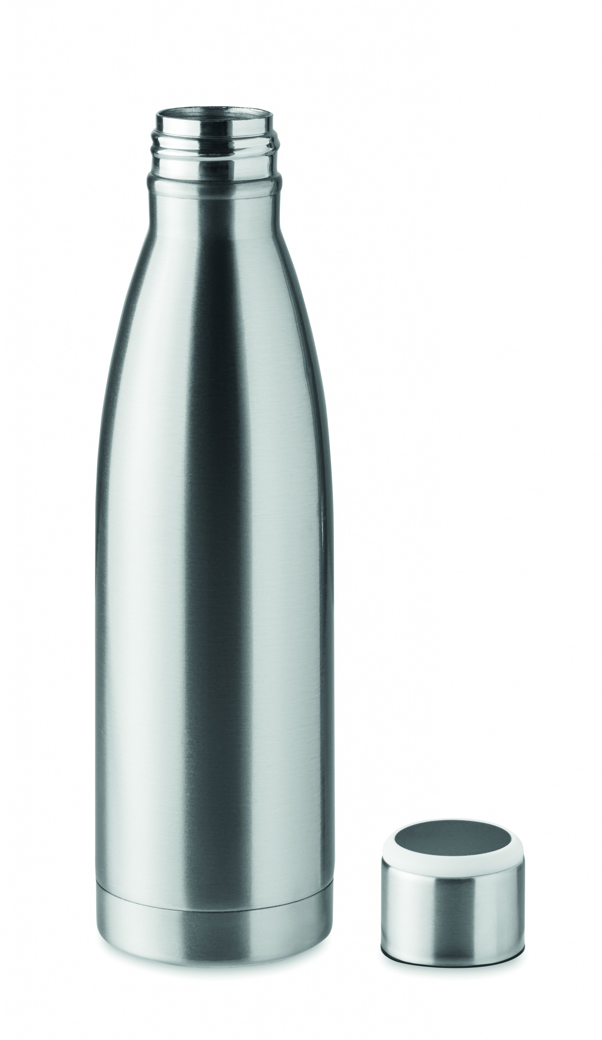 Dubbelväggig flaska i rostfritt stål med vätskepåminnelse. Sensorljus lyser varje timme och påminner dig om när det är dags att dricka. Inkluderar 1 CR2032-batteri. Volym: 500 ml.
