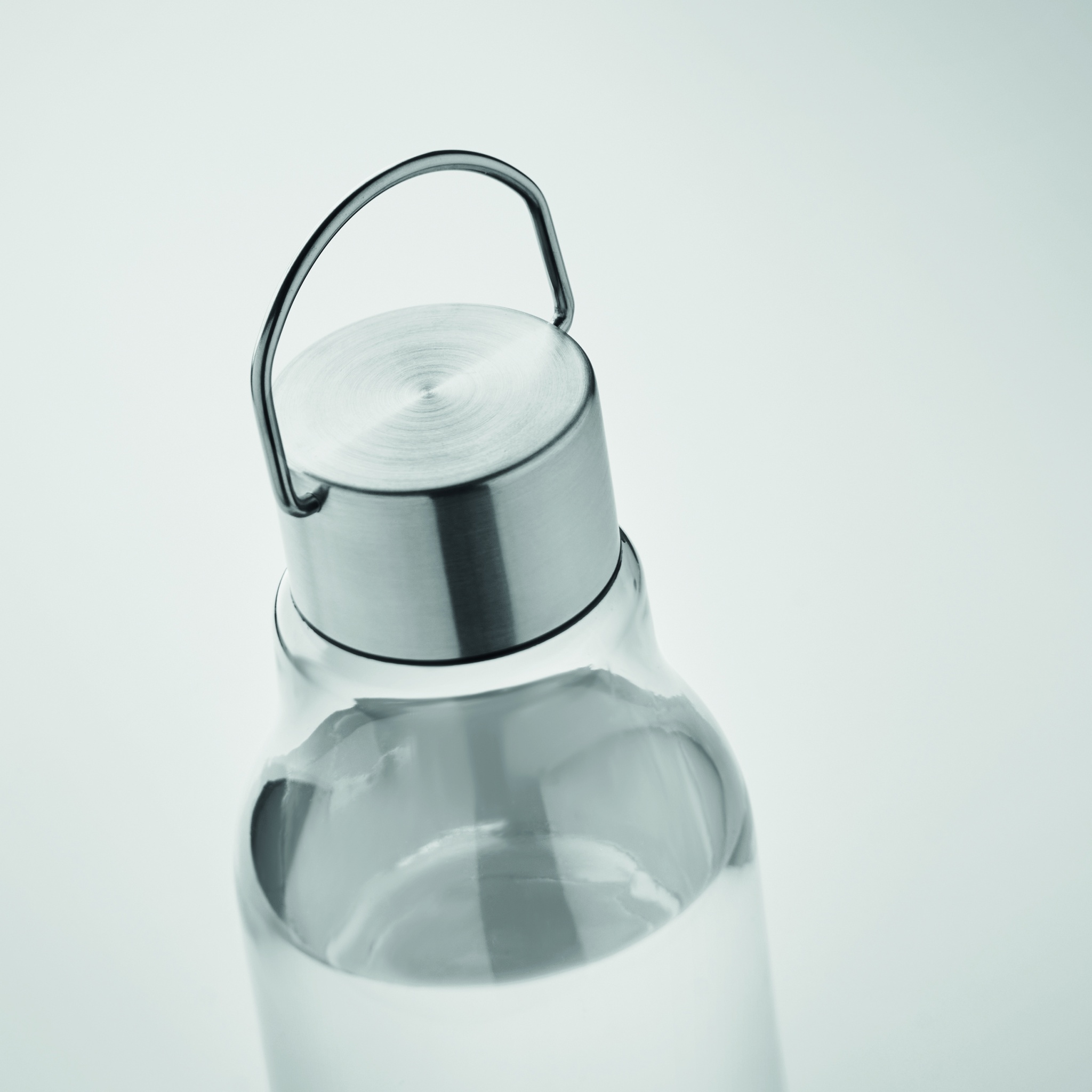 Flaska i Tritan Renew™ som är BPA-fri med lock med handtag i rostfritt stål. Läckfri. Volym: 800 ml. Denna produkt är framställd av 50 % plastavfall med hjälp av ISCC-certifierad massbalans.