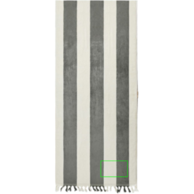En lyxig strandhandduk i bomull, med tofsar på ena kortsidan och solstolsficka på andra. Fäst handduken över solstolen så håller den sig på plats. Perfekt för dagar på stranden eller vid poolen. Våra badlakan är tillverkade i Indien av bomull och har en tjocklek på 450 g/m2. Storlek: 80x180cm OEKO-TEX® STANDARD 100. 09.HIN.68091. Hohenstein HTTI.